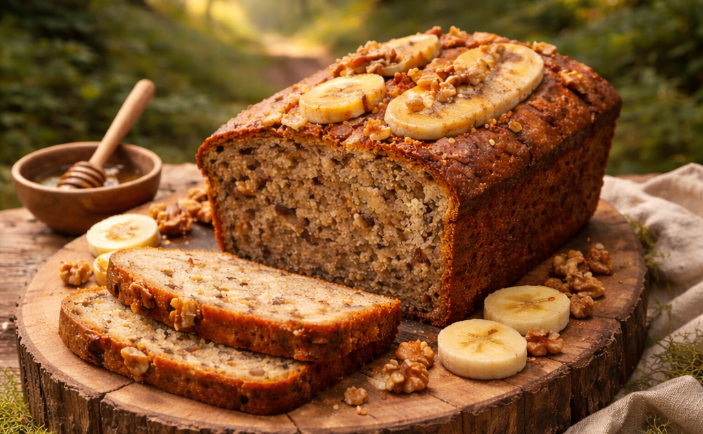 This banana bread is stacked with Vitamin B, Potassium, fiber, protein, ALA, and more. I hope you enjoy.