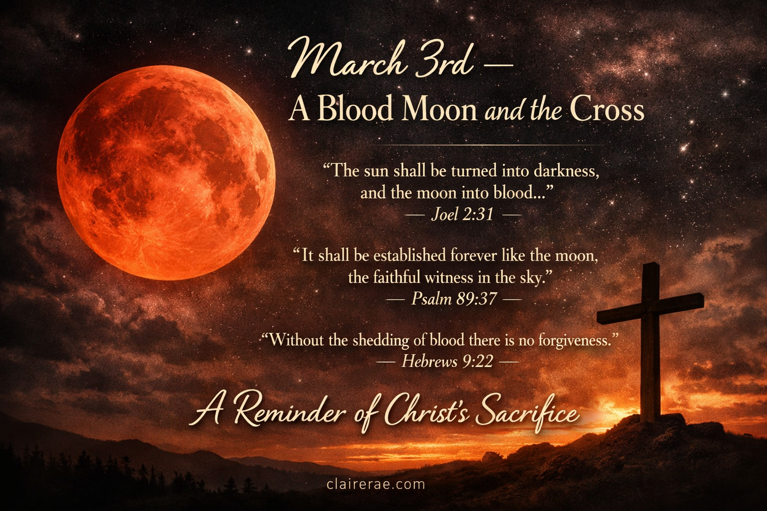 The deep red color of a blood moon reminds me that His sacrifice was not symbolic — it was physical. Real blood. Real pain. Real love.